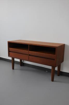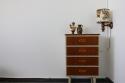スウェーデンから届いたコンパクトな4段チェスト。スウェーデンチークと白にペイントされたデザインの組み合わせがなんとも目を惹きます。小振りなサイズなので狭いスペースにも置きやすく、小物の整理整頓にも重宝するタイプの家具です。