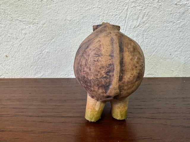 このサイは、丸みを帯びたフォルムと力強い存在感があり、どこかユニークで可愛らしさも感じさせます。リサ・ラーソンの作品らしい手作り感があり、釉薬の風合いが一つ一つ異なるため、どの個体も微妙に違った表情を楽しむことができます。