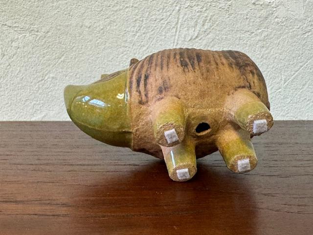 このサイは、丸みを帯びたフォルムと力強い存在感があり、どこかユニークで可愛らしさも感じさせます。リサ・ラーソンの作品らしい手作り感があり、釉薬の風合いが一つ一つ異なるため、どの個体も微妙に違った表情を楽しむことができます。