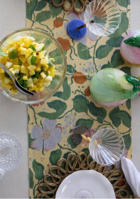 良質なオーガニックコットン100%で織り上げられたスウェーデン伝統のファブリックでテーブルランナーはもちろんデザインや色彩が素敵なのでタペストリーとしてもお使いいただけます。