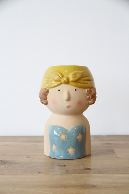 水着姿に黄色のターバンを巻いた、なんとも愛らしい女の子のフラワーベース。