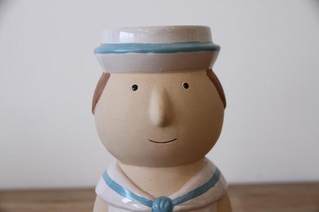 水兵さんのようなセーラー服に身を包んだ、どこか誇らしげな表情の男の子のフラワーベース。