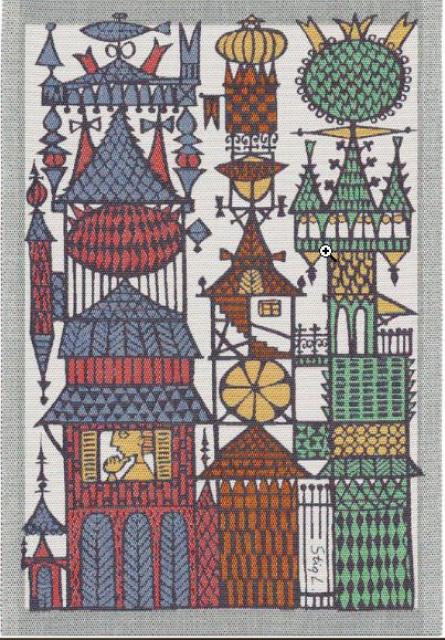 こちらの色鮮やかなテキスタイルは、スウェーデンの老舗ブランド、エーケルンド社のタオル。