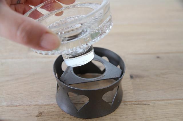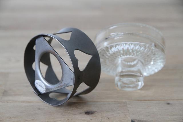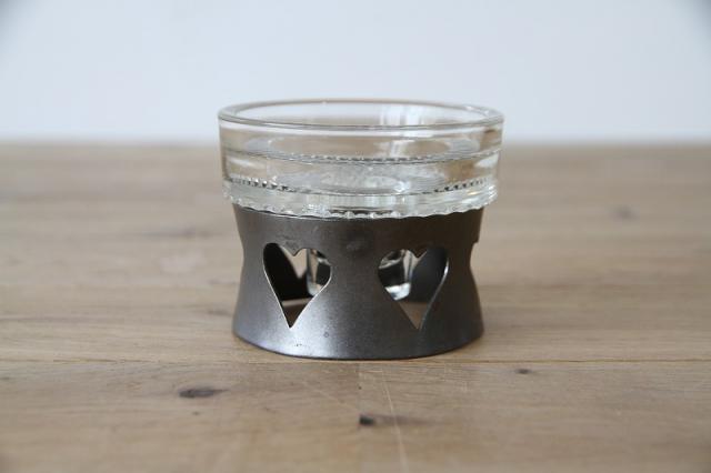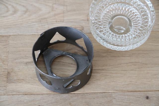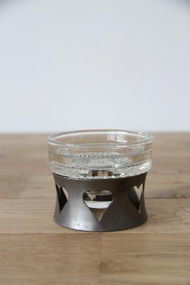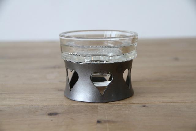 取り外し可能なガラスのキャンドルホルダーは底部分に美しいカッテイングが施され、複雑な模様を映し出しています。