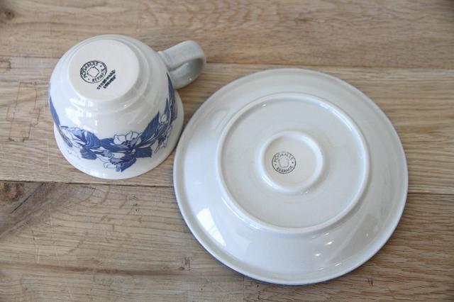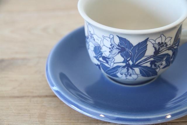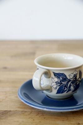 ブルーグレーのソーサーに、同一色の野花がカップにプリントされた落ち着きのある大人っぽい雰囲気のカップ&ソーサー。