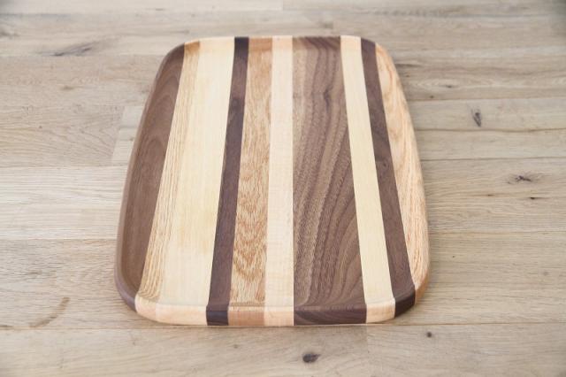 天然木の無垢材を組み合わせたトレイ。