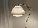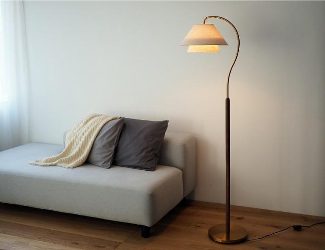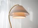 レイヤードされたファブリックシェードと、緩やかに弧を描く支柱が織り成す優美なフォルムが印象的なフロアライトです。