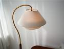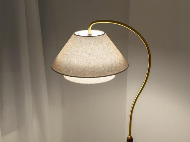 レイヤードされたファブリックシェードと、緩やかに弧を描く支柱が織り成す優美なフォルムが印象的なフロアライトです。