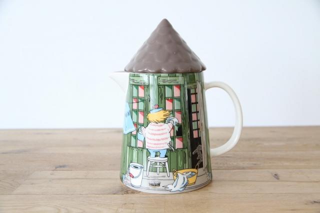 とんがり屋根のフタ付きで、ピッチャーには、窓ガラスをお掃除するトゥーティッキの姿が描かれています。