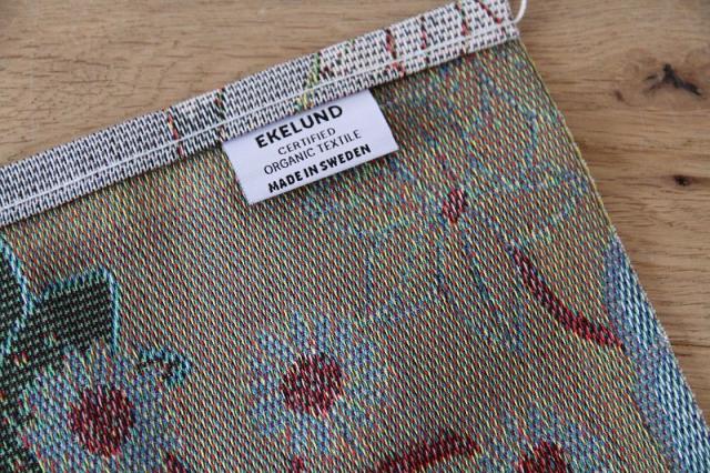 良質なオーガニックコットン100%で織り上げられたスウェーデン伝統のファブリックでテーブルランナーはもちろんデザインや色彩が素敵なのでタペストリーとしてもお使いいただけます。