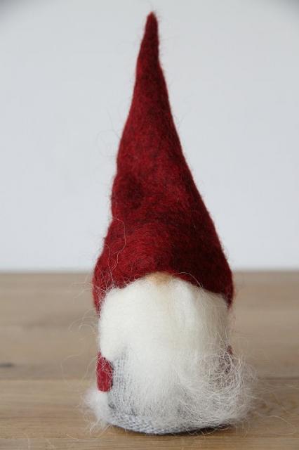 恥ずかしがり屋で帽子を深くかぶっているのが特徴で自慢のおヒゲをぎゅっと握っている姿が可愛らしいトムテです。