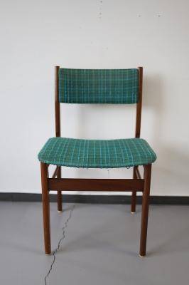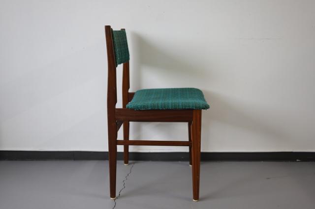 北欧デンマーク買付で出会った1960-70年代製のダイニングチェア。凹凸感ある織り生地の質感とブルーグリーンの鮮やかな色がとても印象的です。フレームの細かなディテールも大変美しく、どこから見ても満足できる一脚ではないでしょうか。