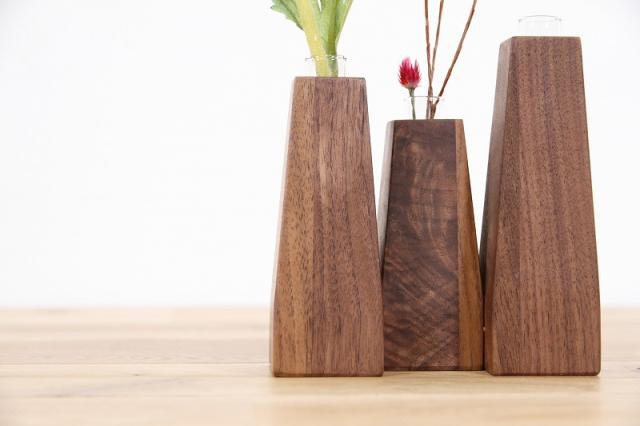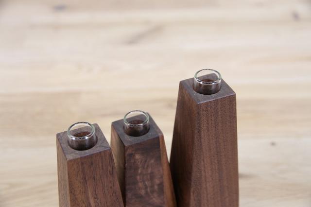 高さ違いの一輪挿しが3つ連なった花瓶で、お好みで1輪、2輪、3輪と