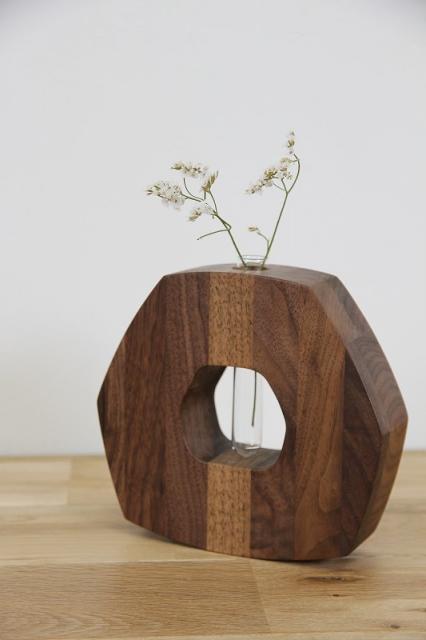 ユラユラ揺れるシンプルな無垢材の花器。