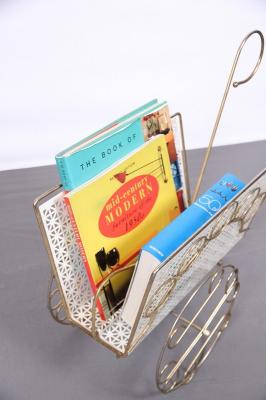 アメリカで買い付けた、ヴィンテージのマガジンラックです。車輪が動くため可動でき、お部屋での移動も簡単。ミッドセンチュリー好きな方にも喜んでいただけるデザインです。