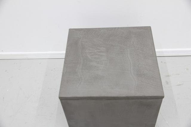 コンクリートのような質感なのに素材は木製と、見た目にギャップのある作り。