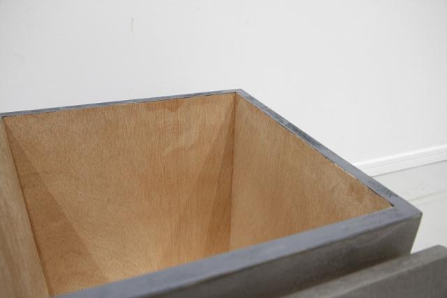 コンクリートのような質感なのに素材は木製と、見た目にギャップのある作り。