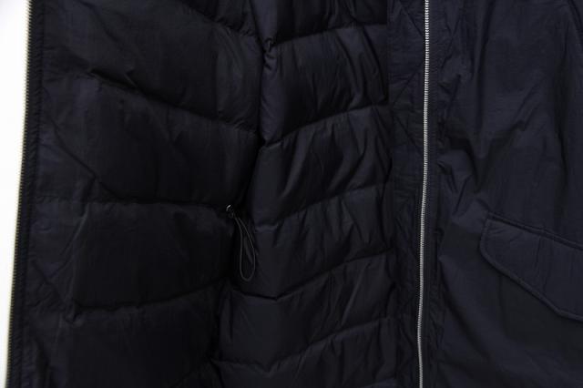 ダブルジップ仕立てのロングアウターです。ナイロン素材の中にダウンが多く詰め込まれた本格派。袖口は防寒用にリブ付で東北の寒さに対応可能です。ウエストは内側で絞れる機能付きでスマートなシルエットにも。驚きの軽さにより肩こりの心配もありません。