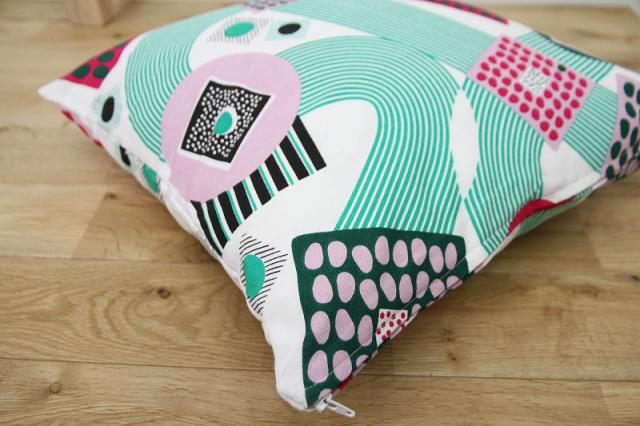 ミッドセンチュリーな曲線的なデザインと、鮮やかな色彩が楽しいMezzaluna Studioのクッションカバーです。すべてハンドメイドで作られています。