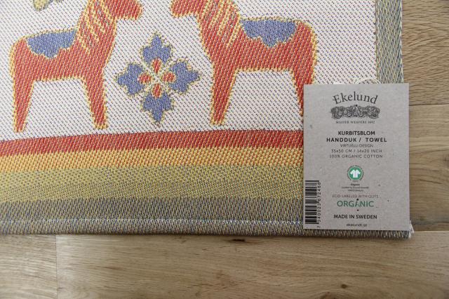 良質なオーガニックコットン100%で織り上げられたスウェーデン伝統のファブリックでキッチンタオルはもちろん、デザインや色彩が素敵なのでタペストリーとしてもお使いいただけます。