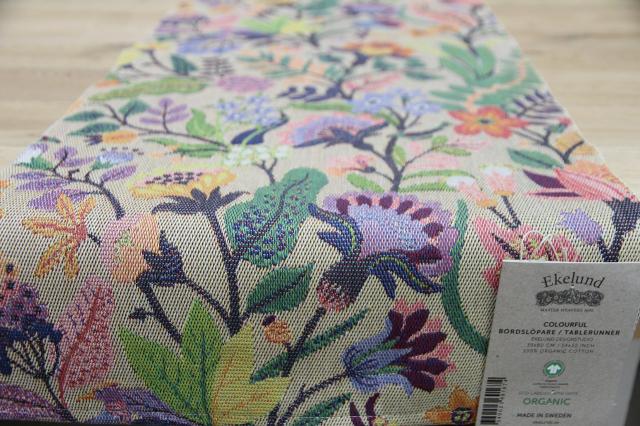 良質なオーガニックコットン100%で織り上げられたスウェーデン伝統のファブリックでテーブルランナーはもちろんデザインや色彩が素敵なのでタペストリーとしてもお使いいただけます。