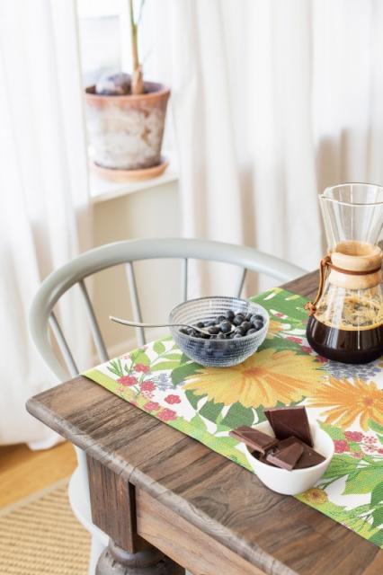 テーブルランナーはもちろん、デザインや色彩が素敵なのでタペストリーとしてもお使いいただけます。
