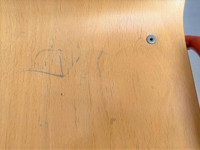 クレヨンのあとや小さなキズがところどころありますが、今までこの椅子を使ってきた子供たちの軌跡が残っています。