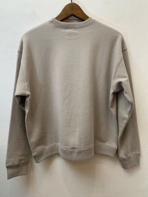 関西地方にある、創業約100年の吊編み機工場に製作して頂いた生地を使用しています。23SSまで展開していた[Rec:Supima]シリーズの素材をそのまま使用しておりますが、繊維の復元加工を半分にし、その代わりにバイオ加工を施すことでスムースな手触りを残しながらも、少しフェードしたような見た目に仕上げました。表面の光沢は、加工を半分にすることで少し軽減しているため、よりカジュアルで着用しやすくしております。