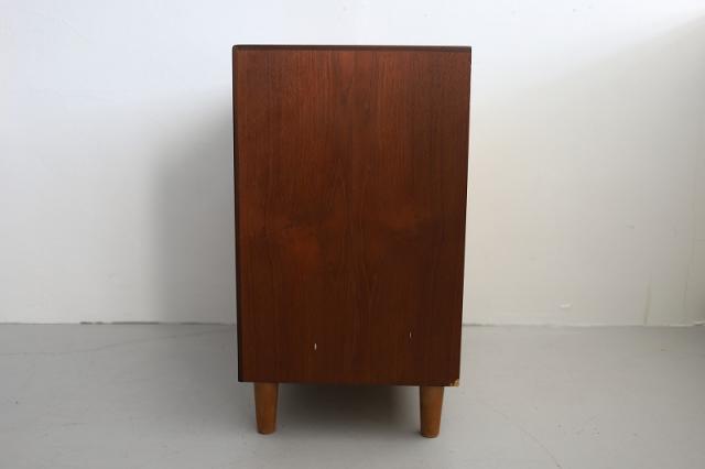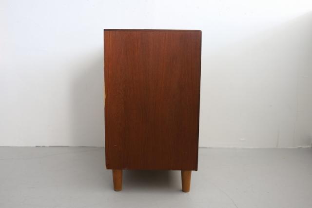 北欧デンマーク製のヴィンテージ品です。脚が短めな可愛いシルエット。シンプルな4段チェストです。省スペースで北欧を味わえる一台。リビング・ダイニングの他、寝室や玄関先など、シチュエーションの合わせて使いやすい収納家具です。