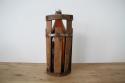 元々はワインや油などの液体を保存するために使われていたと考えられ、持ち運びやすいように、木の枠に取っ手が付いています。