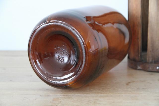 木の枠に入ったヴィンテージのガラスボトル瓶です。