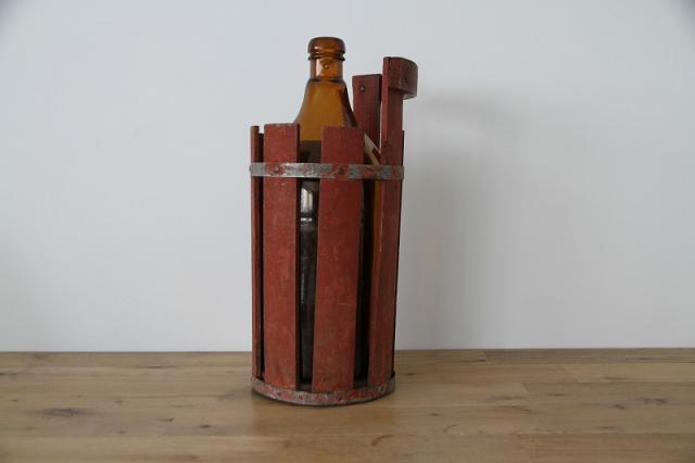 瓶を保護するための木製の枠が付いています。