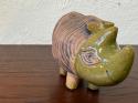 このサイは、丸みを帯びたフォルムと力強い存在感があり、どこかユニークで可愛らしさも感じさせます。リサ・ラーソンの作品らしい手作り感があり、釉薬の風合いが一つ一つ異なるため、どの個体も微妙に違った表情を楽しむことができます。