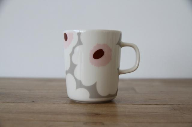 フィンランドの有名なデザインブランド marimekko(マリメッコ) の代表作、「Unikko(ウニッコ)」 デザインを施したマグカップ。