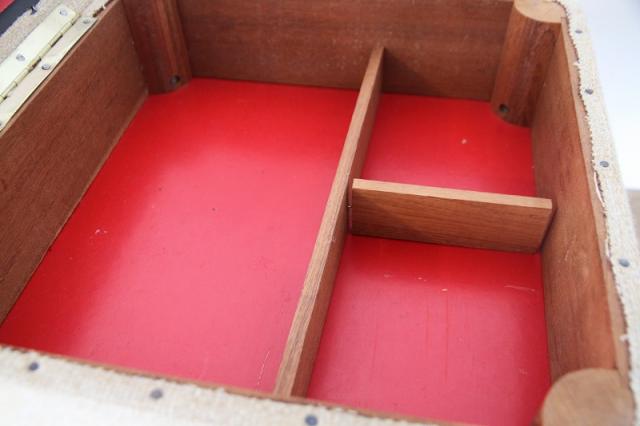 蓋を開けると拘りの赤色で、小分けになっている真ん中の仕切りは入れるものに合わせて稼働できるようになっています。