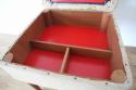 蓋を開けると拘りの赤色で、小分けになっている真ん中の仕切りは入れるものに合わせて稼働できるようになっています。