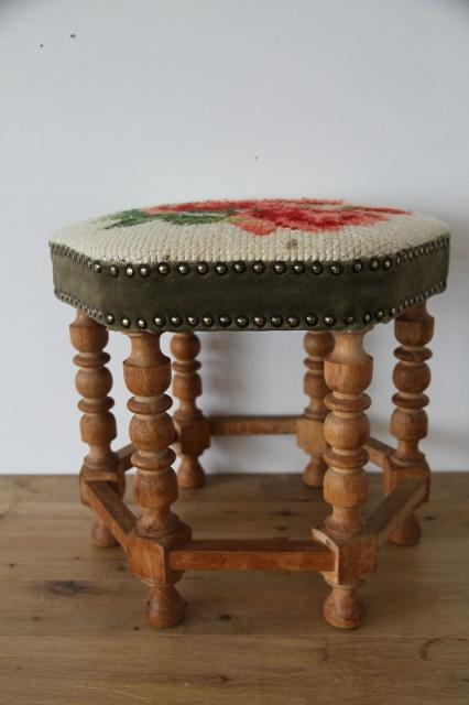 デンマークで出会った、味わい深いヴィンテージの六角形スツールです。