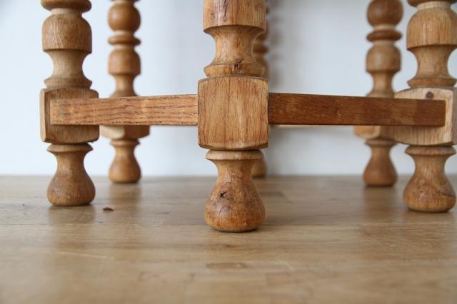 脚部は、美しい彫りが施されたオーク材と思われるしっかりとした木材を使用。6本脚のデザインは安定感があり、耐久性にも優れています。どこか愛らしさも感じさせるフォルムが、北欧らしい温もりを演出してくれます。