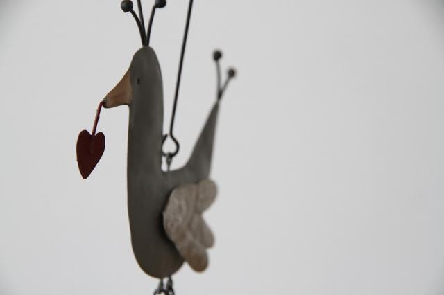小さな鳥がハートを抱えて飛ぶ姿は、見る人の心をふっと和ませてくれます。
