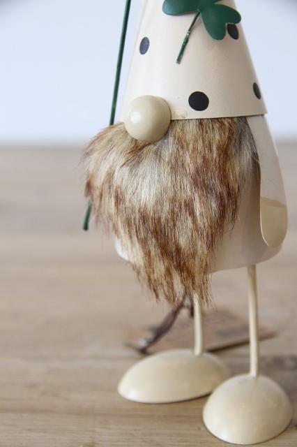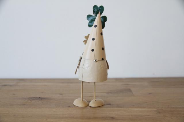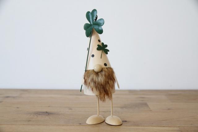 ドイツのクラフトブランドBADEN(バーデン)が手がける、幸運のシンボル・クローバーを身にまとった、とんがり帽子のトムテ(北欧の森の妖精)。