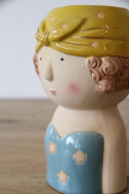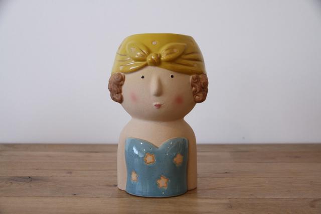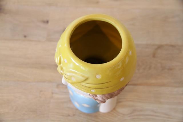 水着姿に黄色のターバンを巻いた、なんとも愛らしい女の子のフラワーベース。