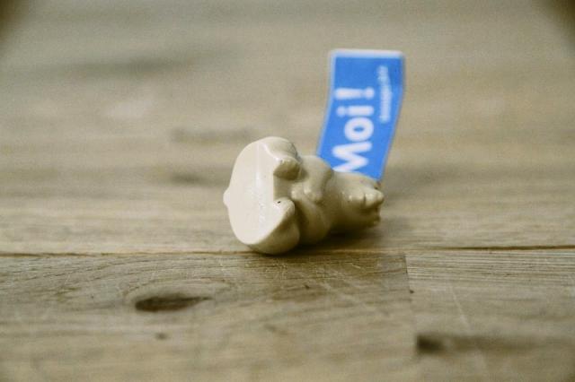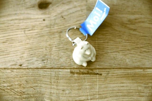 フィンランドの白クマ貯金箱をそのまま小さくしたキーホルダー。