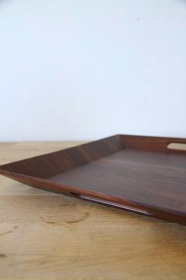 朝食やティータイムのトレイとしてだけでなく、リビングで小物や本を置くディスプレイとしてもお使いいただけます。持ち手部分も木をくり抜いて作られており、手に馴染むなめらかな手触りです。