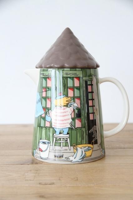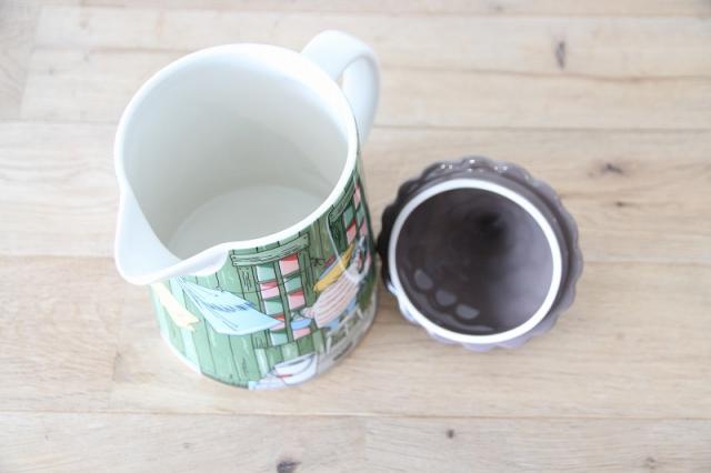 とんがり屋根のフタ付きで、ピッチャーには、窓ガラスをお掃除するトゥーティッキの姿が描かれています。