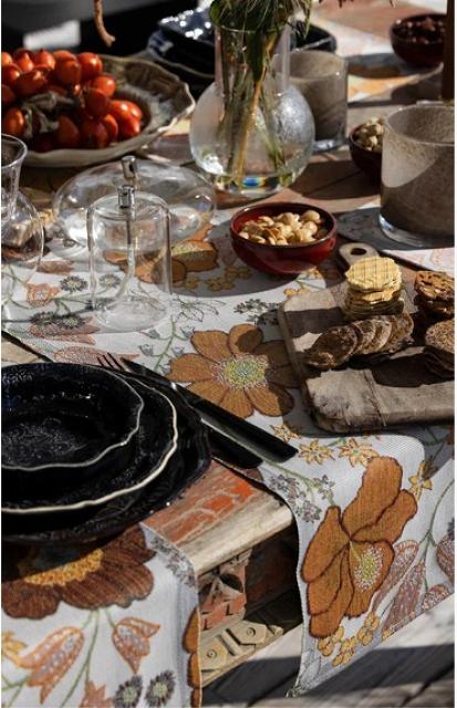 良質なオーガニックコットン100%で織り上げられたスウェーデン伝統のファブリックでテーブルランナーはもちろんデザインや色彩が素敵なのでタペストリーとしてもお使いいただけます。