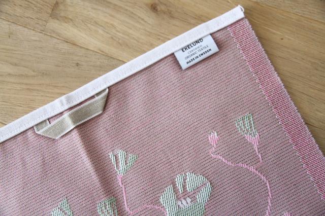 こちらの色鮮やかなテキスタイルは、スウェーデンの老舗ブランド、エーケルンド社のタオル。
