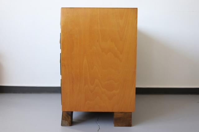 北欧デンマーク買付便の4段チェストです。ツートンの木目と引き出しの取手などの白のパーツの組み合わせがとってもレトロ。どっしりとしたつくりで安定感があります。