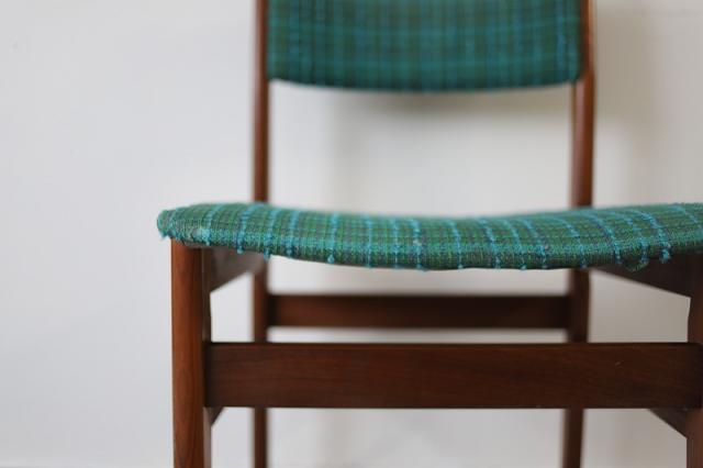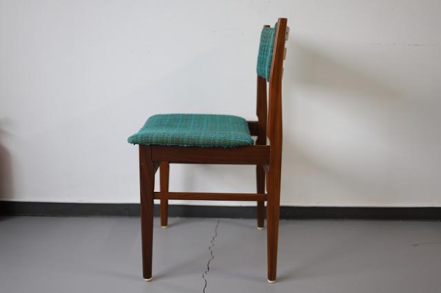 北欧デンマーク買付で出会った1960-70年代製のダイニングチェア。凹凸感ある織り生地の質感とブルーグリーンの鮮やかな色がとても印象的です。フレームの細かなディテールも大変美しく、どこから見ても満足できる一脚ではないでしょうか。