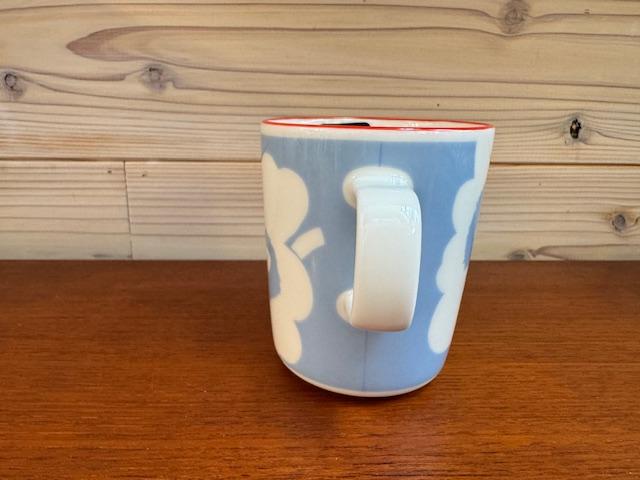 フィンランドの有名なデザインブランド marimekko(マリメッコ) の代表作、「Unikko(ウニッコ)」 デザインを施したマグカップ。