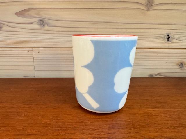フィンランドの有名なデザインブランド marimekko(マリメッコ) の代表作、「Unikko(ウニッコ)」 デザインを施したマグカップ。